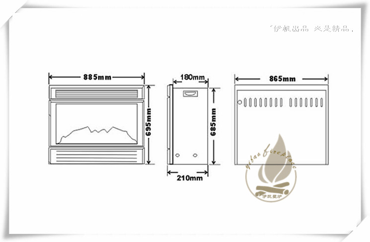 標(biāo)準(zhǔn)配置/standard layout | 電壁爐加厚冷軋鋼板/專用LED光源/加厚鋼化玻璃面/高仿真立體陶瓷纖維木柴炭火床/專用光學(xué)反射幕布 |