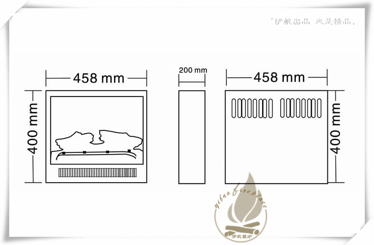 標(biāo)準(zhǔn)配置/standard layout | 電壁爐加厚冷軋鋼板/專用LED光源/加厚鋼化玻璃面/高仿真立體陶瓷纖維木柴炭火床/專用光學(xué)反射幕布 |