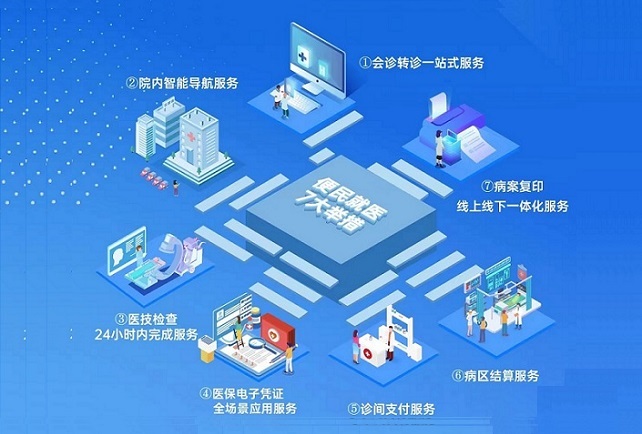 綜合運(yùn)用云計(jì)算、大數(shù)據(jù)、物聯(lián)網(wǎng)、移動(dòng)互聯(lián)網(wǎng)和人工智能等新一代信息化技術(shù),在醫(yī)院建立線(xiàn)上、線(xiàn)下相融合的自助就醫(yī)服務(wù)體系,打造以電子病歷為核心,具有輔助決策支持功能的臨床信息系統(tǒng)和支持臨床科研和醫(yī)學(xué)教育的信息平臺(tái),建立精細(xì)化、智能化的經(jīng)濟(jì)運(yùn)營(yíng)、綜合管理和智能后勤保障體系,完善基于“互聯(lián)網(wǎng)+”的醫(yī)療協(xié)同體系及信息安全體系.